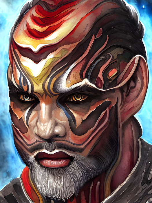 Time to explore the unknown depths of the Star Trek universe! Have you ever thought of a Klingon-Vulcan hybrid? I have, and was so fascinated by the idea, I created a portrait. He's ritually painted himself, battle ready, but equally ready to convert his inner fire to diplomacy, logic always guiding his actions.