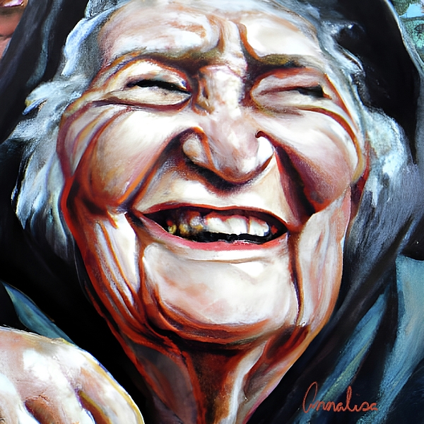 Have you ever seen a face just full of character? This is a portrait of a happy old woman, a celebration of fall and the crone stage of life. This digital painting will make you feel good about the inevitability of change and finding joy at every age.